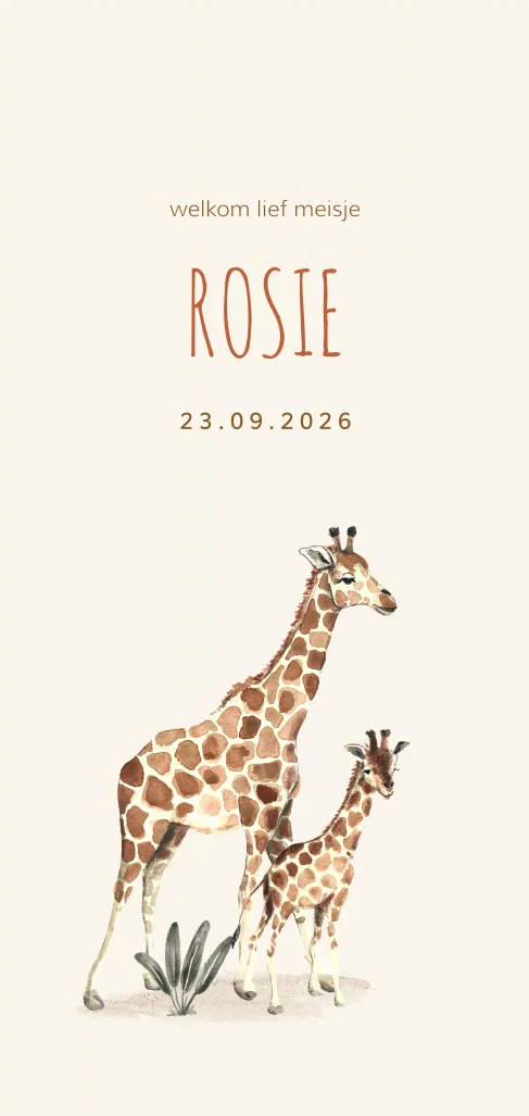 Geboortekaart dochter met illustratie van giraffes en ronde hoeken
