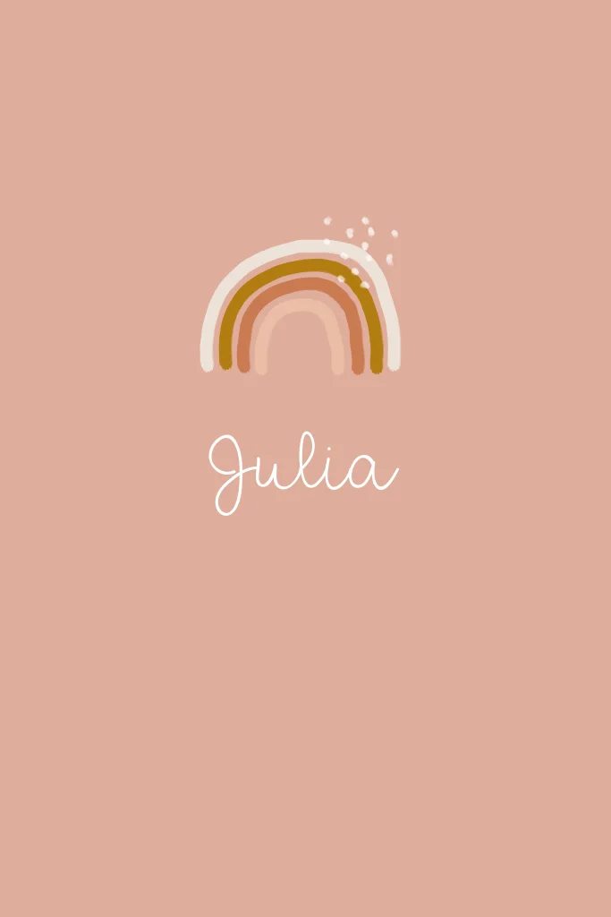 Lief en hip geboortekaartje met ronde hoeken voor de geboorte van je dochter met een schattig regenboogje op een zacht roze achtergrond.