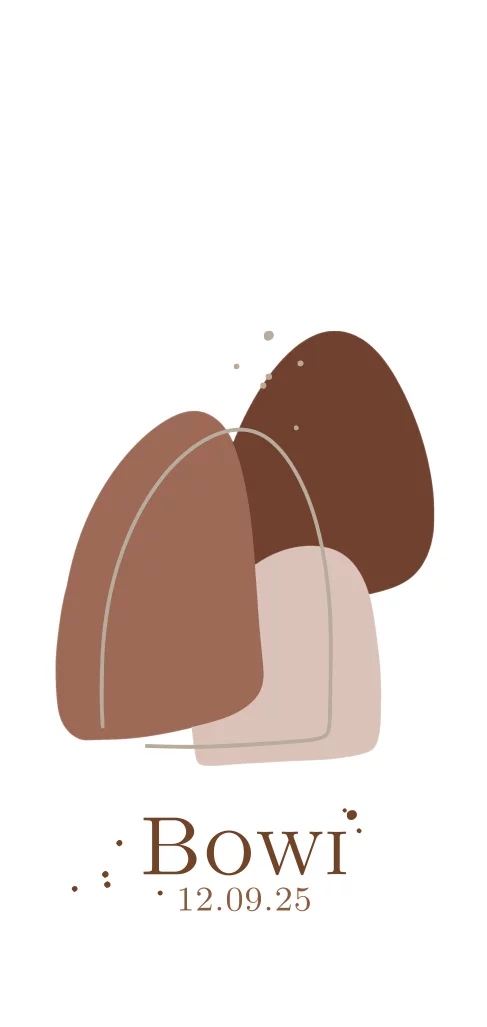 Dit is een stoer kaartje voor jullie pasgeboren zoon of dochter. Op het kaartje zijn drie organische vormen in aardetinten te zien. Het kaartje heeft ronde hoeken. Pas het kaartje naar wens aan in onze online editor en bestel een proefdruk om dit kaartje in het echt te bewonderen!