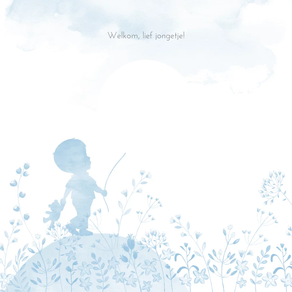 Blauw geboortekaartje doorkijkje met watercolour silhouettje