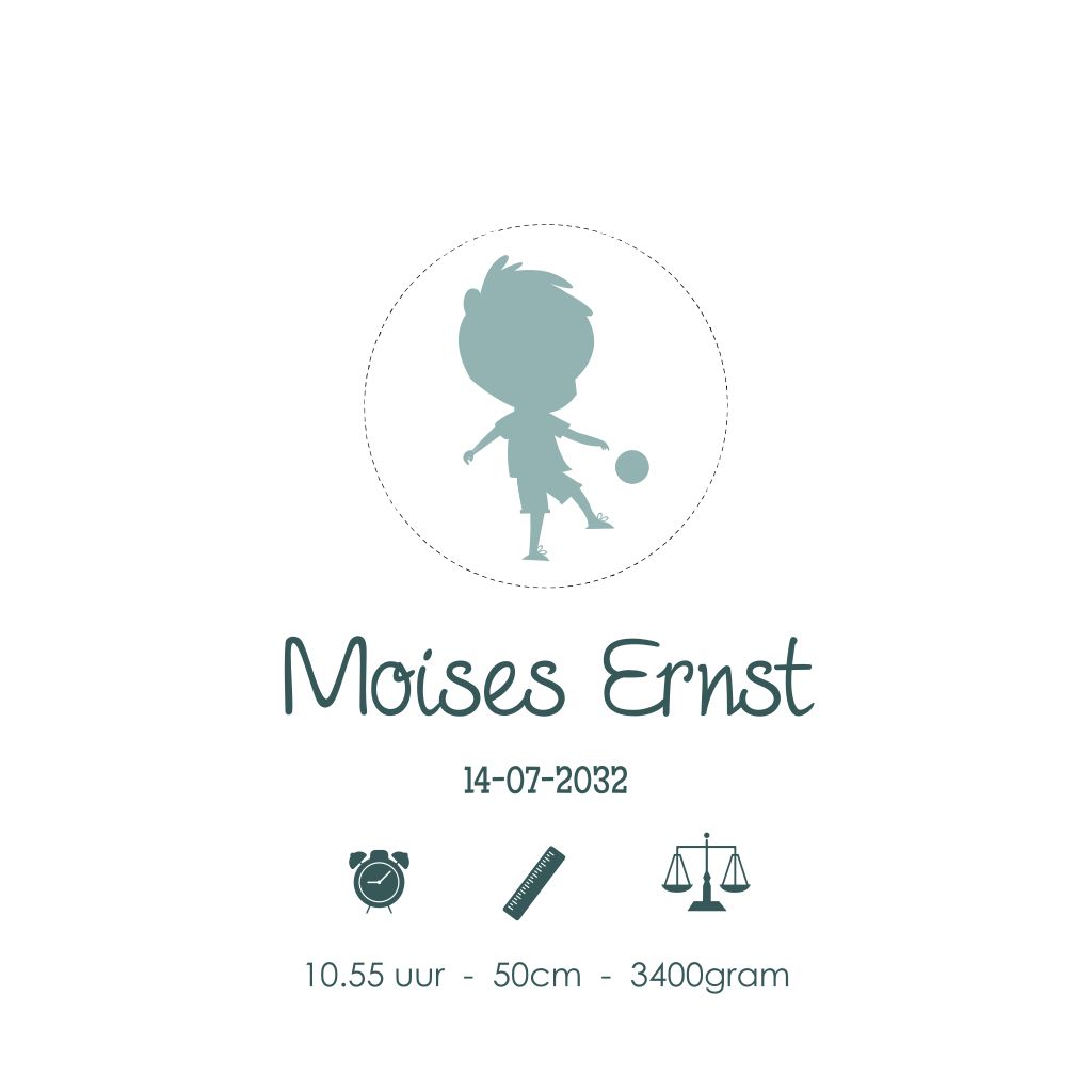 Een stoer geboortekaartje met doorkijkje. Het kaartje heeft een in het doorkijkje een silhouetje van een jongetje dat aan het voetballen is. Pas het kaartje naar wens aan in onze online editor.