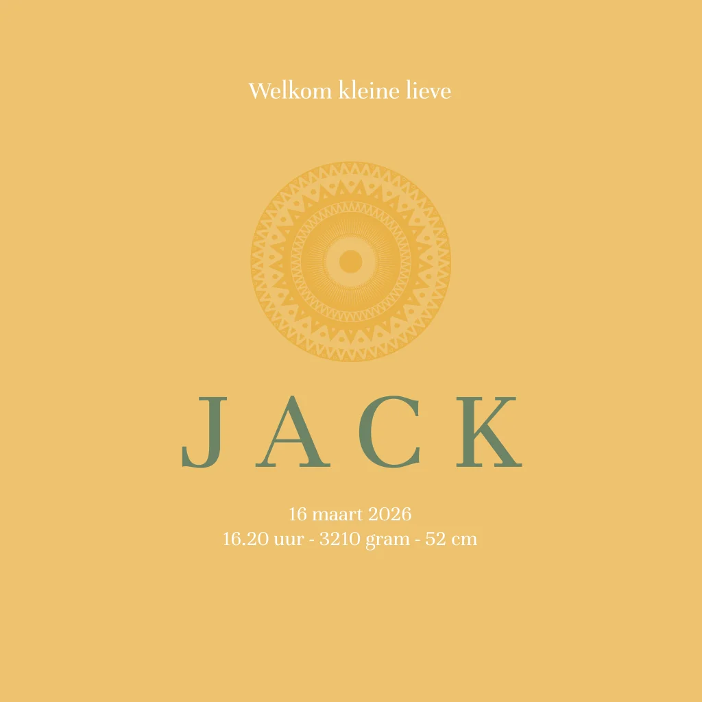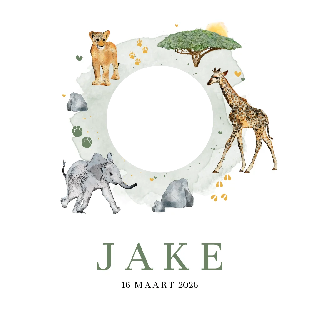 Stoer stans geboortekaartje met cirkel uitsnede en jungle thema