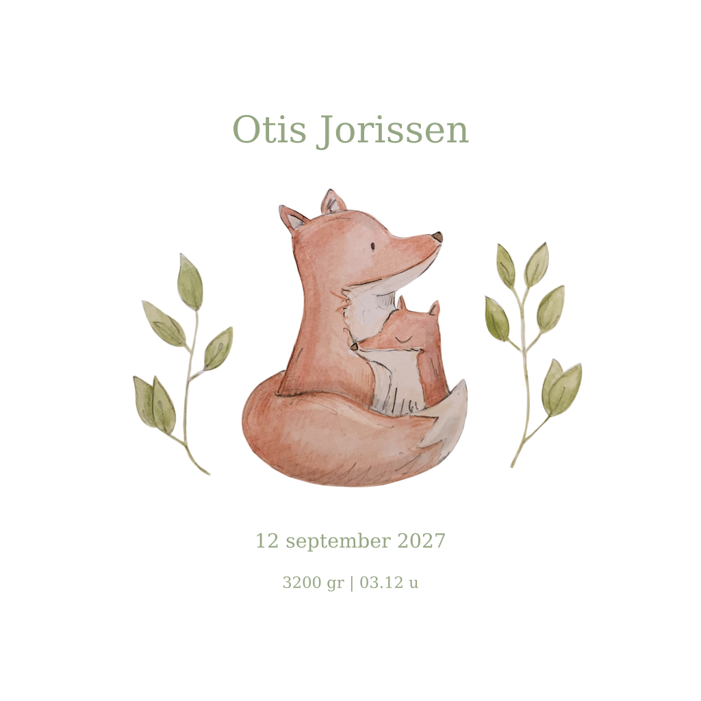 Wat een schattig geboortekaartje voor jouw tweede zoontje. Het kaartje heeft een lief doorkijkje naar jouw twee zoons verbeeld als twee vosjes. Het kaartje heeft een beige kleur en de vosjes zijn met de hand geïllustreerd.