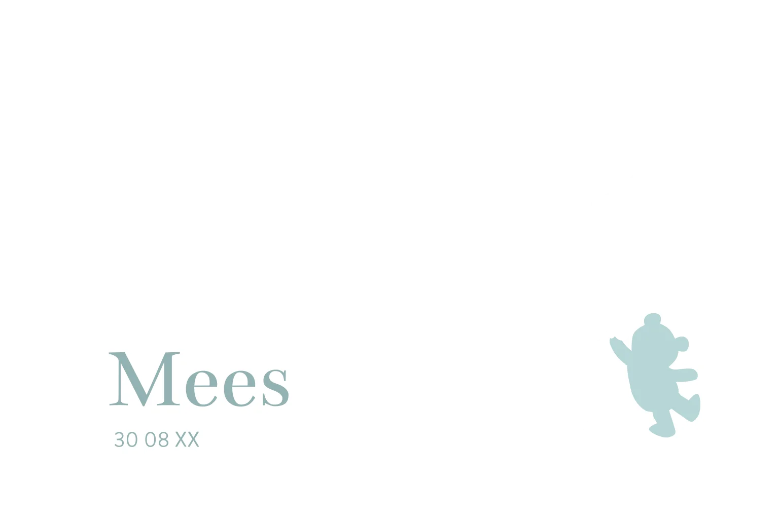 Wat een uniek en tof geboortekaartje voor jouw zoontje. Dit kaartje heeft een uniek doorkijkje naar de blauwe binnenkant. Het doorkijkje heeft de vorm van een jognens silhouetje. Het jongetje houdt een knuffelbeertje in de hand. Pas het kaartje naar wens aan in onze online editor.