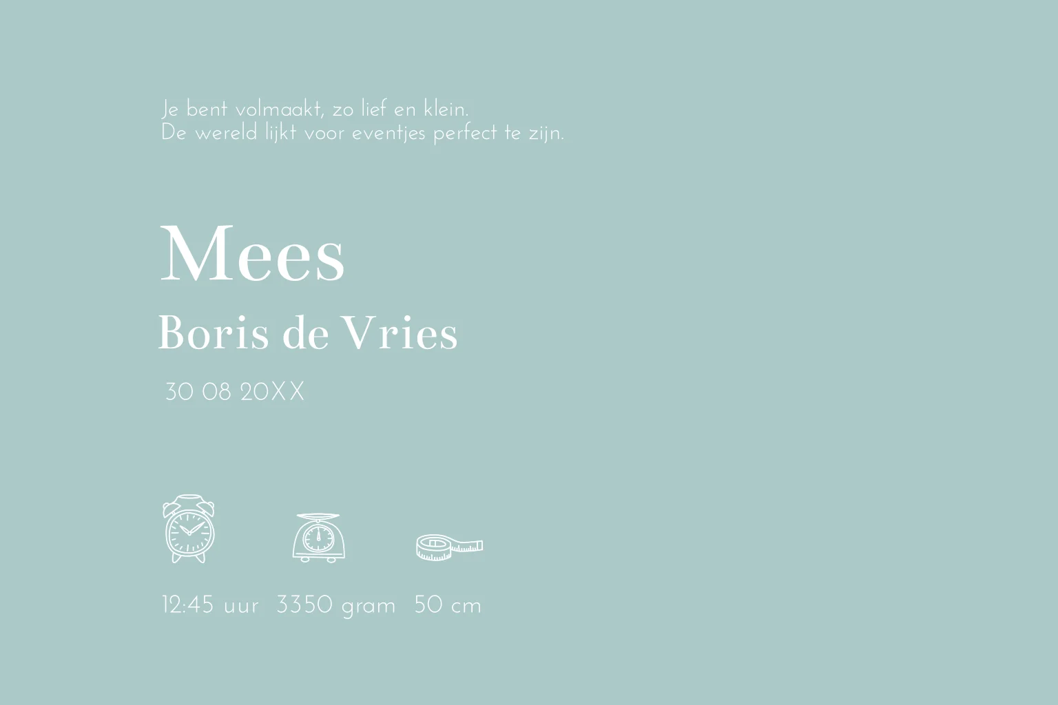 Origineel blauw geboortekaartje jongen met doorkijkje van silhouetje