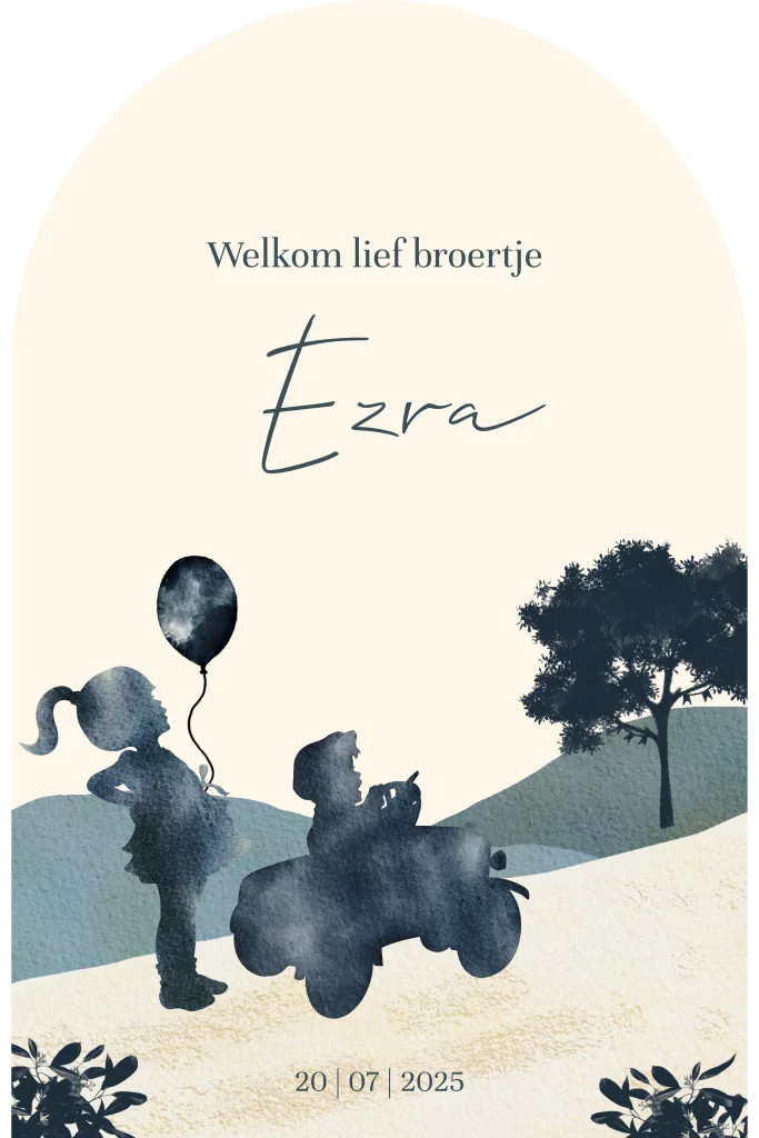 Origineel broertje geboortekaartje met silhouetjes in arch vorm