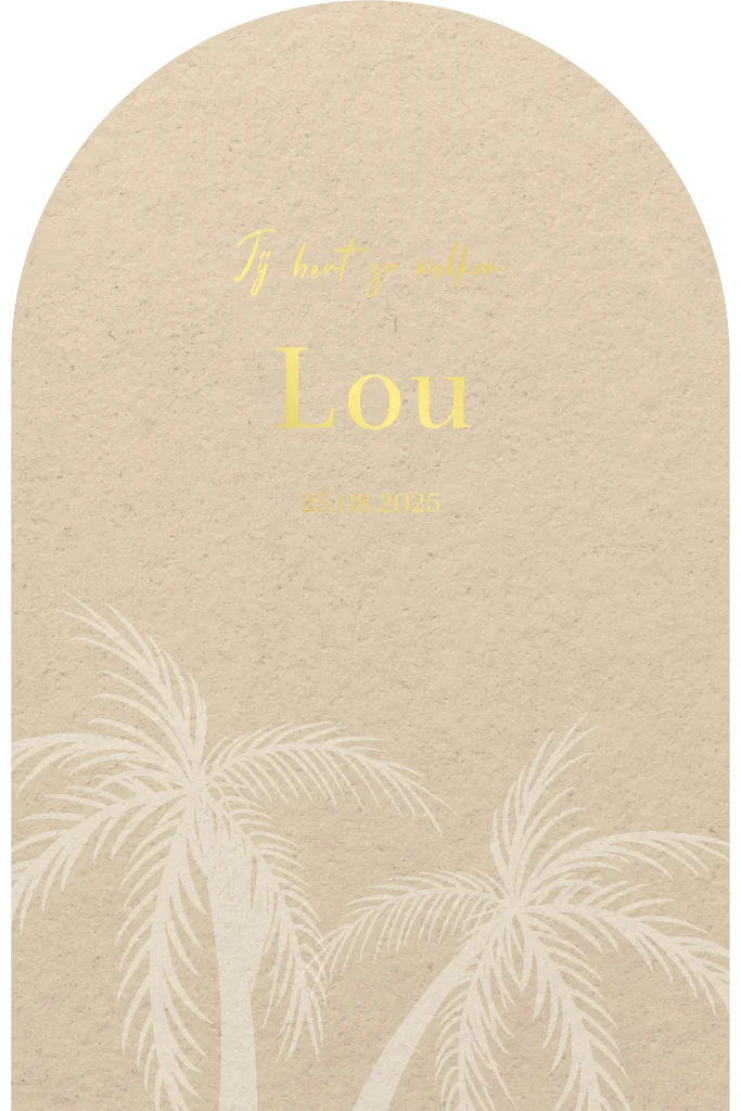 Goudfolie geboortekaartje met palmbomen voor een jongen