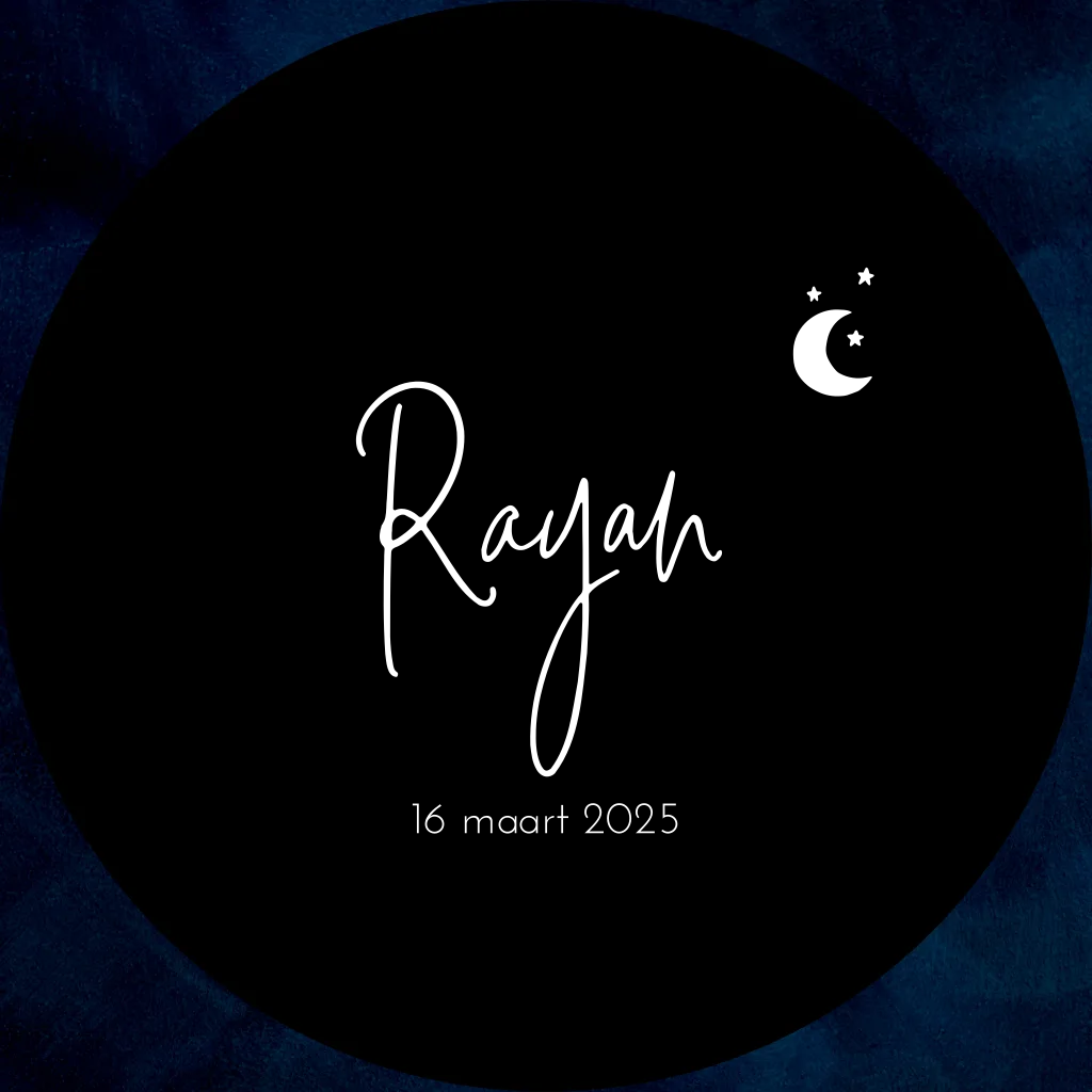 Dit is een prachtige geboorte aankondiging voor jullie zoontje. Het kaartje heeft de vorm van een cirkel. De combinatie van de donkerblauwe velvet-look achtergrond met goudfolie opdruk is prachtig. Pas het kaartje naar wens aan in onze online editor en bestel snel een proefdruk om dit kaartje in het echt te zien!