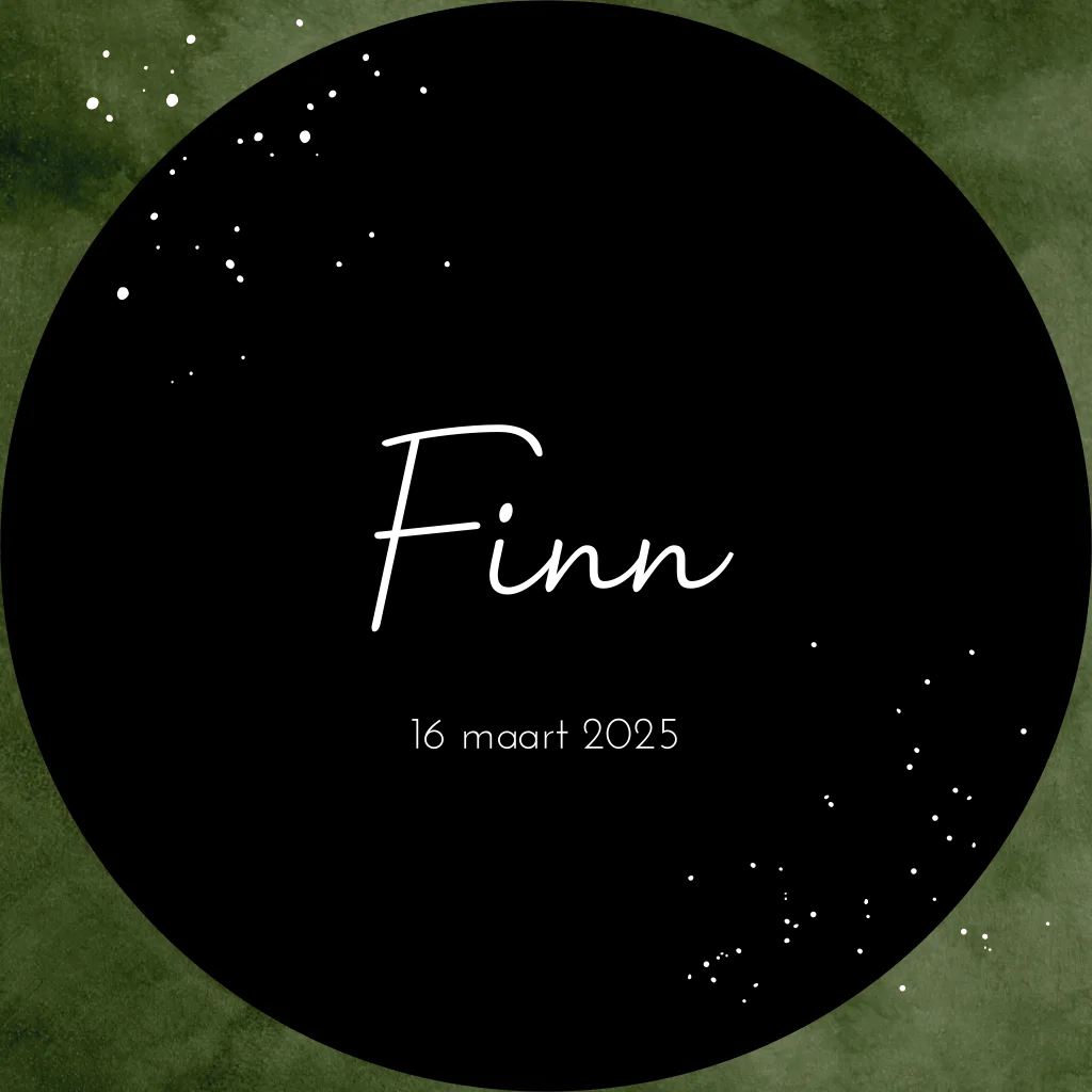 Dit is een stoer en bijzonder geboortekaartje voor jullie zoontje. Het kaartje heeft de vorm van een cirkel met een groene velvet-look achtergrond. De naam, geboortedatum en spetters in goudfolie maken dit kaartje helemaal feestelijk. Pas het kaartje naar wens aan in onze online editor en bestel snel een proefdruk om dit kaartje in het echt te zien!