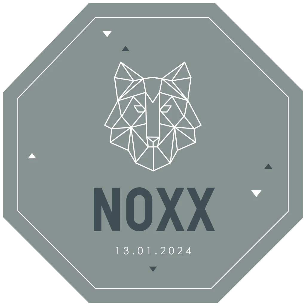 Dit is een stoer geboortekaartje voor jullie zoon. Het kaartje heeft de vorm van een hexagon met grijze achtergrond. Op het kaartje staat een geometrische wolf. Pas het kaartje naar wens aan in onze online editor en bestel snel een proefdruk om dit kaartje in het echt te zien!