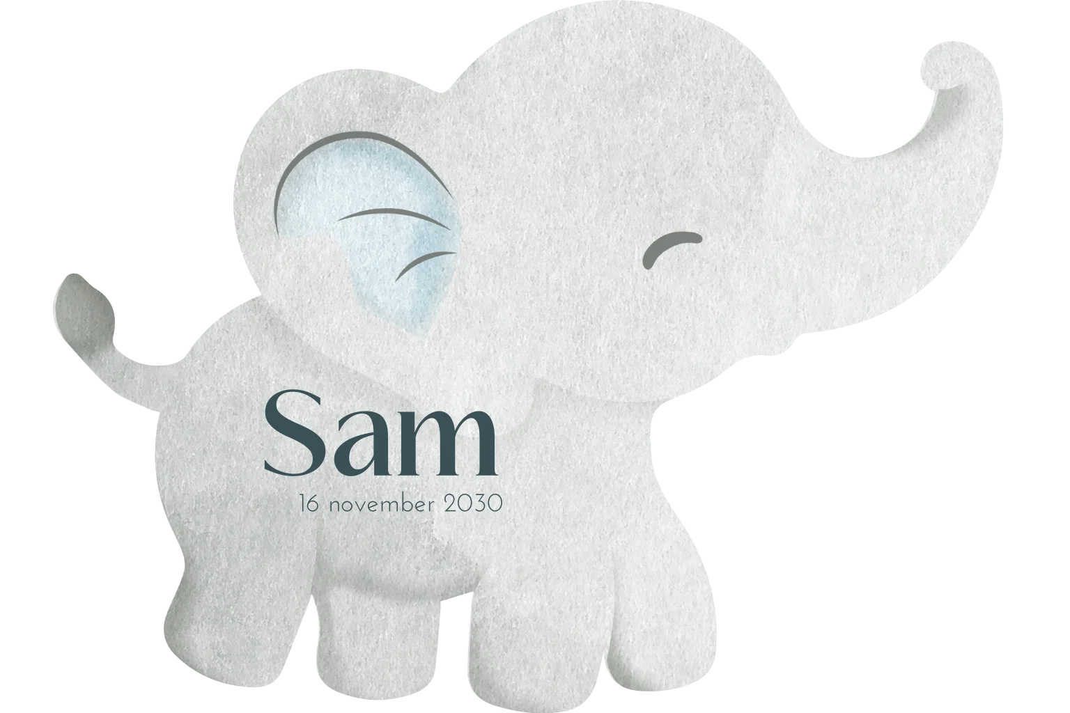 Uniek geboortekaartje in de vorm van een olifant voor een jongen
