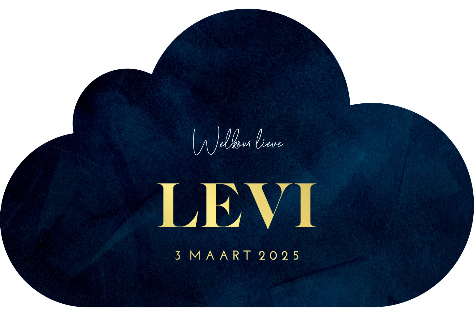 Origineel goudfolie geboortekaartje in de vorm van een wolkje