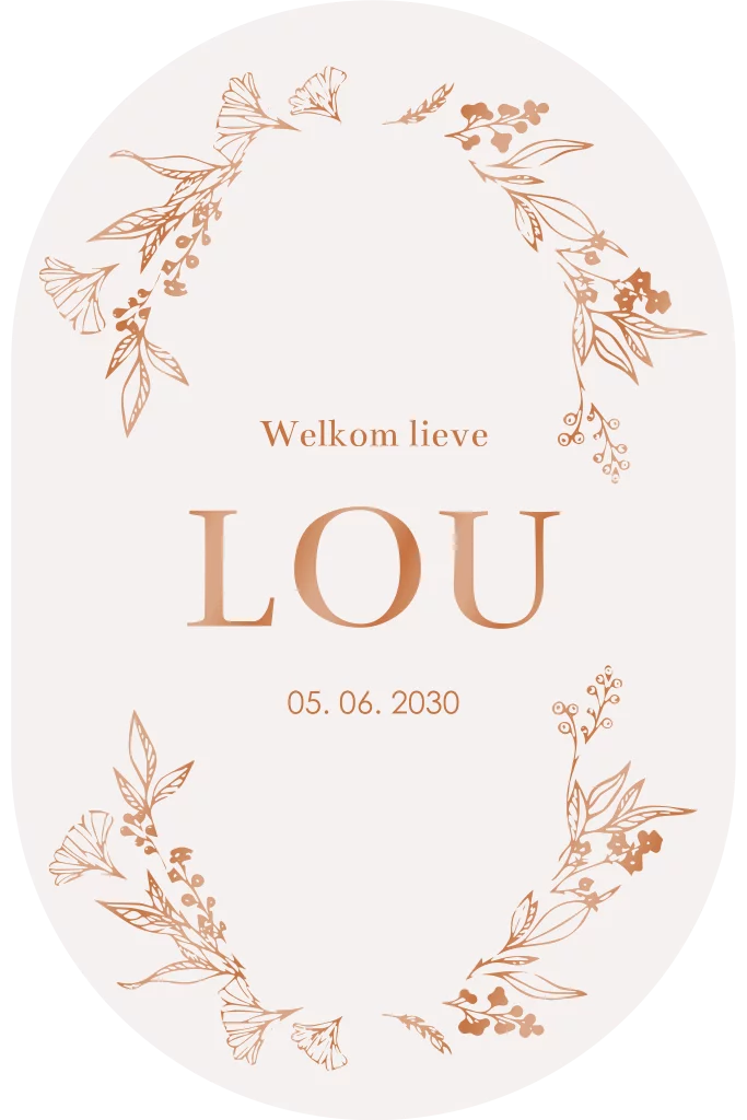 Origineel ovaal geboortekaartje met hoogglans takjes