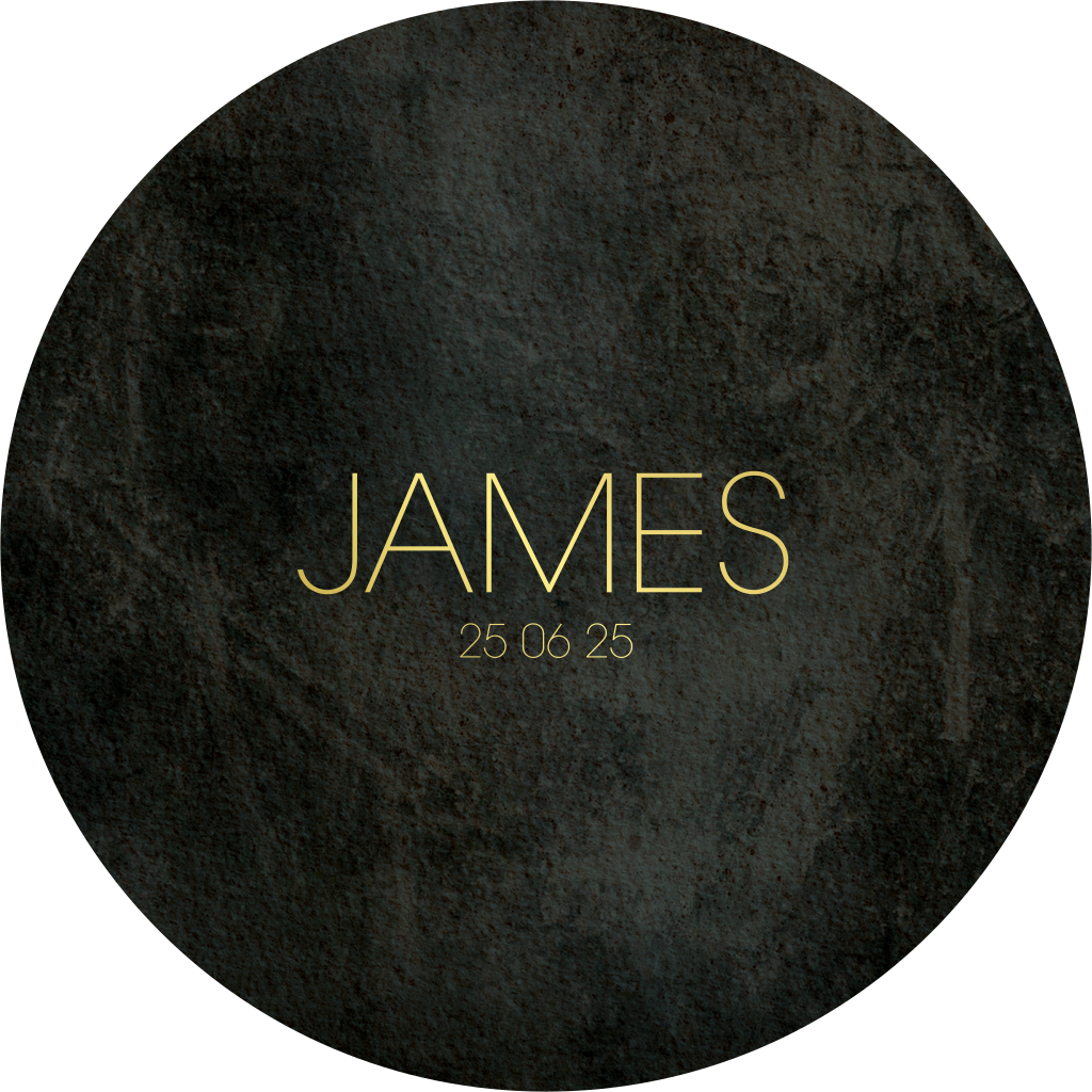 Kondig de geboorte van jullie zoon aan met dit unieke kaartje! Het kaartje heeft de vorm van een cirkel met een zwarte velvet-look achtergrond. De goudfolie typografie geeft deze kaart een luxe uitstraling. Pas het kaartje naar wens aan in onze online editor en bestel snel een proefdruk om dit kaartje in het echt te zien!