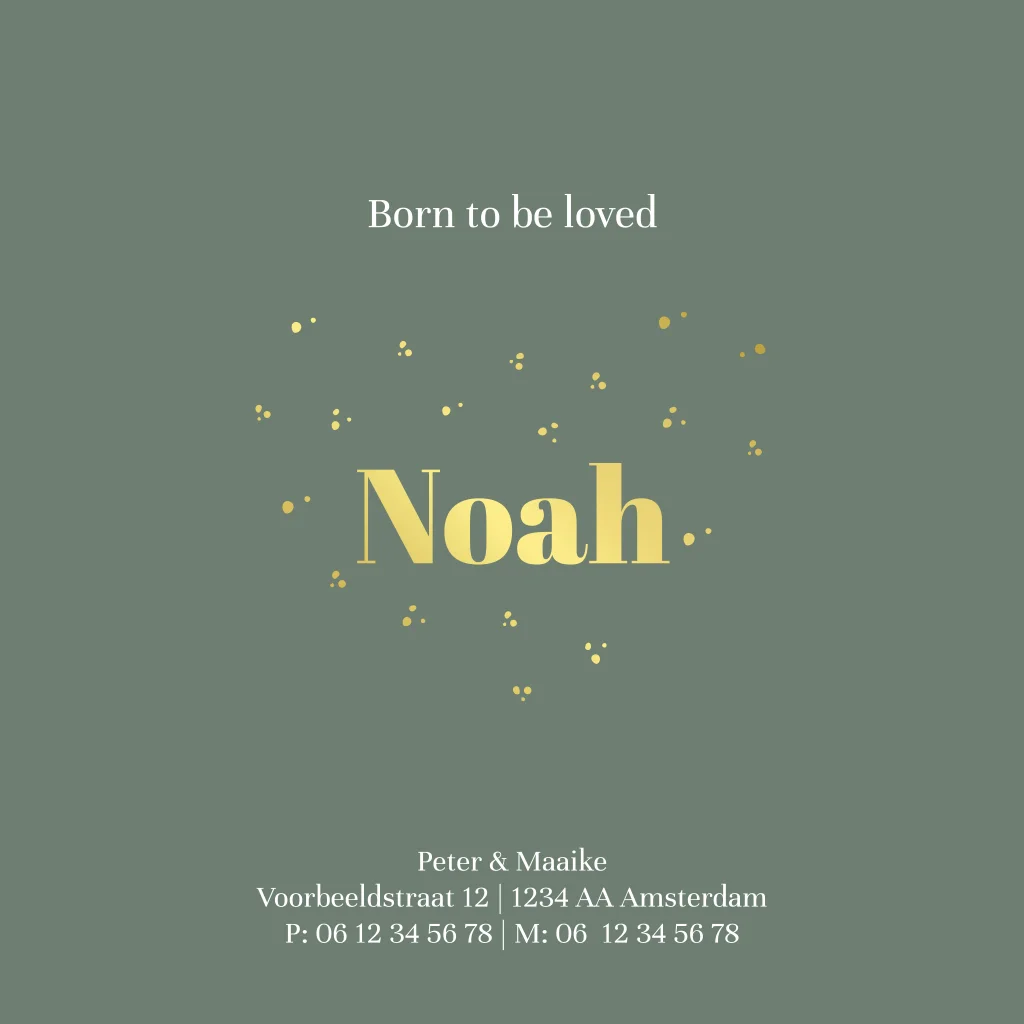 Dit is een lief geboortekaartje voor jullie zoon. De uitsnede van het hart geeft een doorkijkje naar de binnenkant van de kaart. Hier zie je de naam in goudfolie van jullie kleintje gedrukt. Pas het kaartje naar wens aan in onze online editor en bestel snel een proefdruk om dit kaartje in het echt te zien!