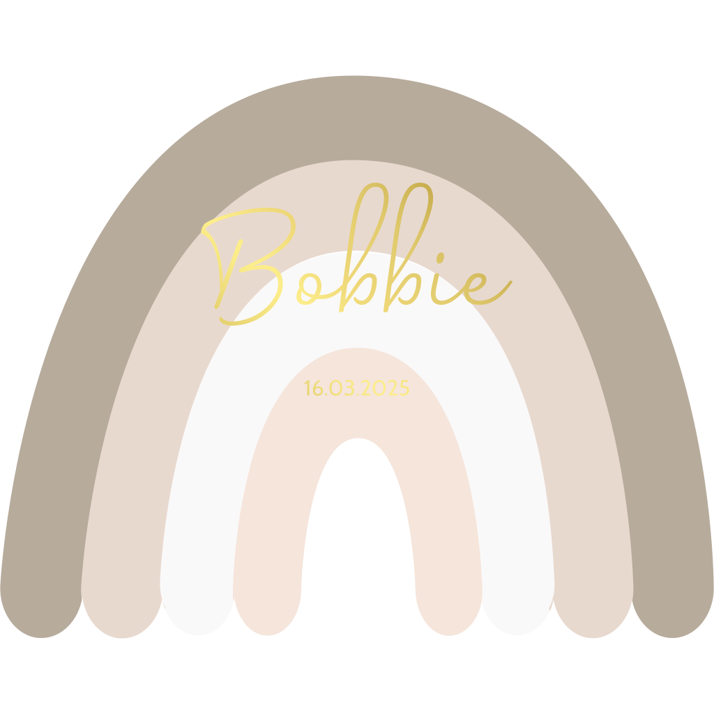 Een origineel geboortekaartje voor jullie kleintje. De regenboog heeft mooie aardetinten en heeft een stijlvolle uitstraling. Het kaartje kan je volledig personaliseren in onze online editor.