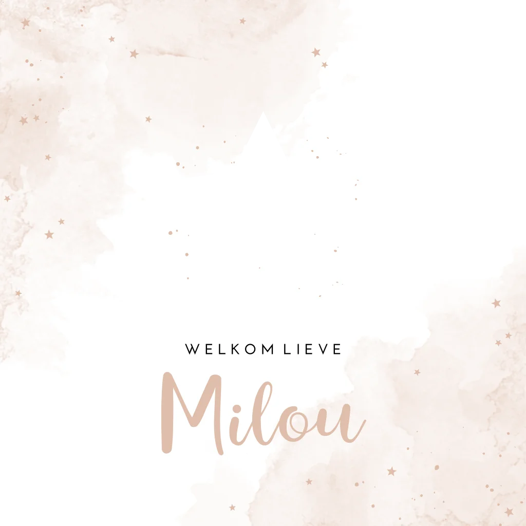 Dit is een stoer geboortekaartje voor jullie dochter. Het kaartje heeft een oudroze watercolour achtergrond. De uitsnede van de ster geeft een doorkijkje naar de binnenkant van de kaart. Pas het kaartje naar wens aan in onze online editor en bestel snel een proefdruk om dit kaartje in het echt te zien!