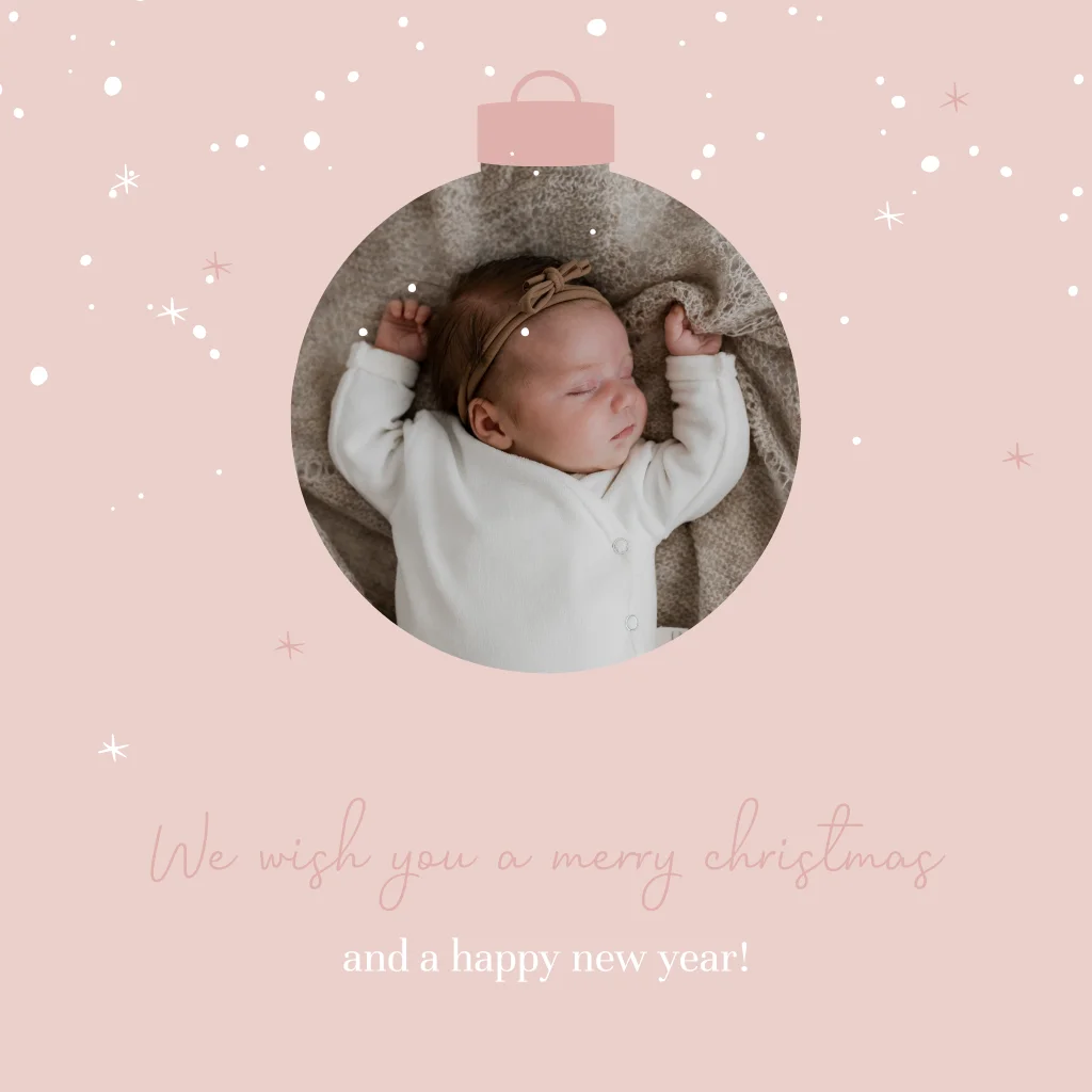 Een schattige kerstkaart met de tekst 'my first christmas'. Leuk voor als jullie een dochtertje hebben gekregen en samen jullie eerste kerst vieren. Upload jullie eigen familie of babyfoto en verstuur de kaart naar jullie dierbaren.
