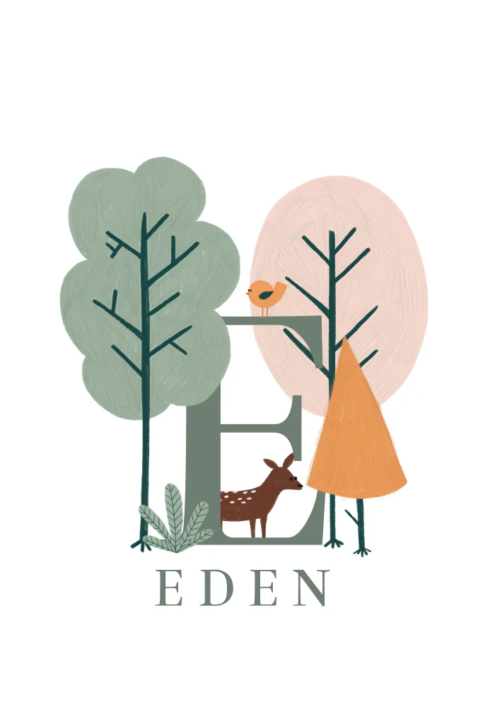 Kondig de geboorte van jullie zoon of dochter aan met dit natuurlijke kaartje! Het kaartje heeft de vorm van een arch en op het kaartje zijn bomen in verschillende kleuren, een hertje en een initiaal te zien. Het kaartje kan helemaal naar wens aangepast worden in onze online editor.