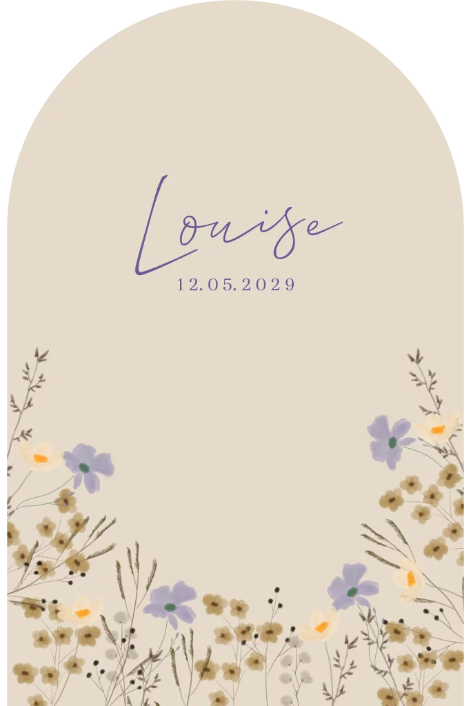 Uniek geboortekaartje in arch vorm met watercolour bloemen