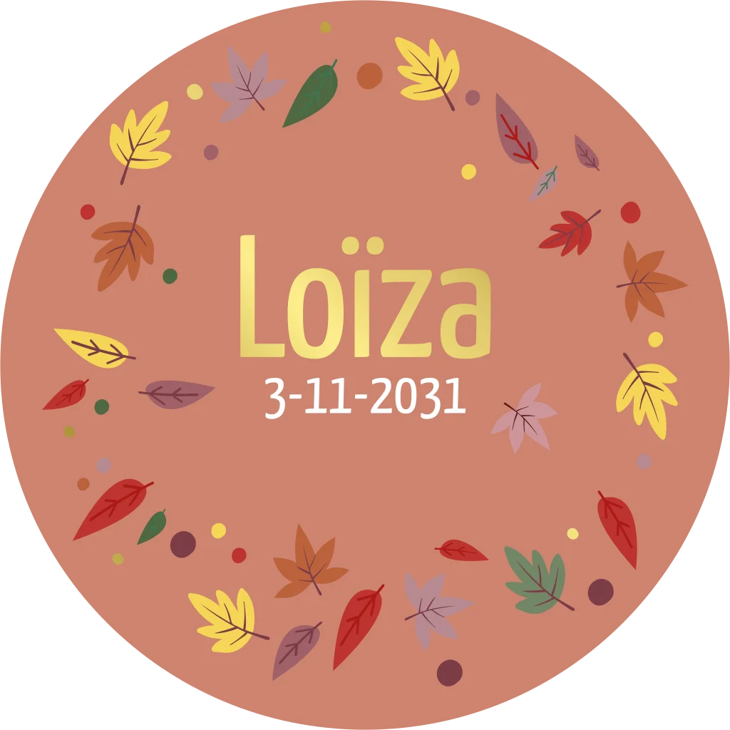 Dit is een sfeervol geboortekaartje voor jullie dochter. Het kaartje heeft de vorm van een cirkel. De goudfolie naam staat centraal op het kaartje en wordt omringd door een krans van herfstbladeren. Pas het kaartje naar wens aan in onze online editor en bestel snel een proefdruk om dit kaartje in het echt te zien!
