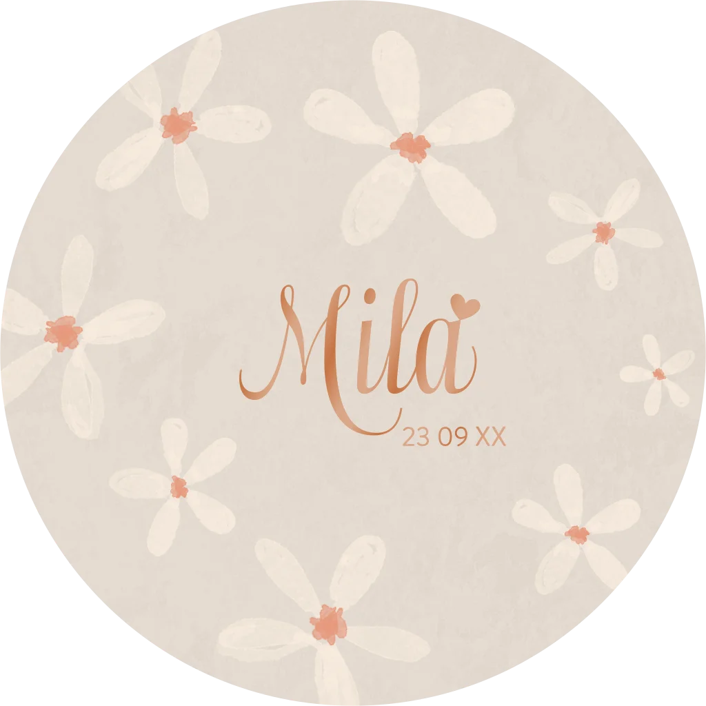 Kondig de geboorte van jullie dochter aan met dit mooie ronde kaartje! Het kaartje heeft een lichte achtergrond met de tekeningen van bloemen. De naam en geboortedatum staan centraal op het kaartje en worden gedrukt in hoogglans. Pas het kaartje naar wens aan in onze online editor.