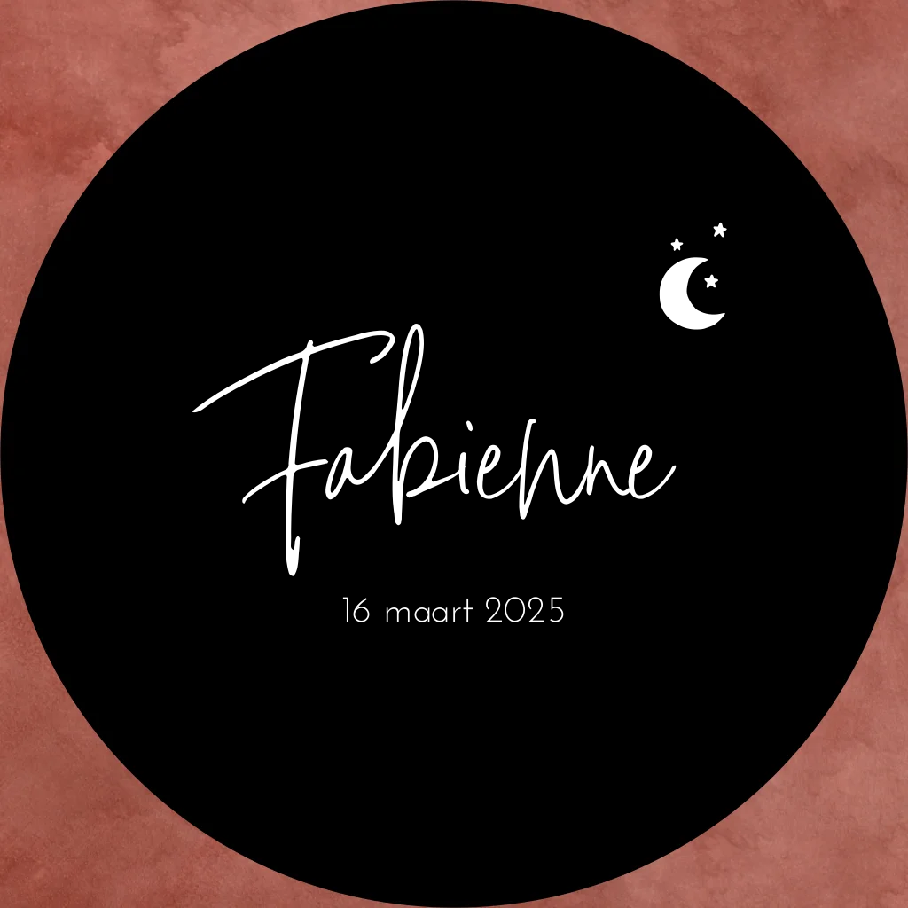 Dit is een origineel kaartje voor de geboorte van jullie dochtertje. Het kaartje heeft de vorm van een cirkel met een prachtige velvet-look achtergrond. De naam, geboortedatum, maan en sterren worden gedrukt in goudfolie. Dit geeft de kaart een luxe uitstraling. Pas het kaartje naar wens aan in onze online editor en bestel snel een proefdruk om dit kaartje in het echt te zien!