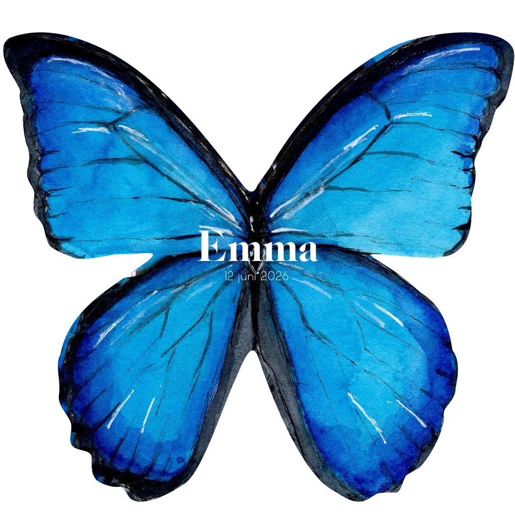 Dit is een uniek kaartje voor je pasgeboren dochter. Het kaartje heeft de vorm van een vlinder. Centraal op de kaart lees je de naam van je kindje. Ook zo'n fan van dit kaartje? Bestel een proefdruk en bewonder dit kaartje in het echt.