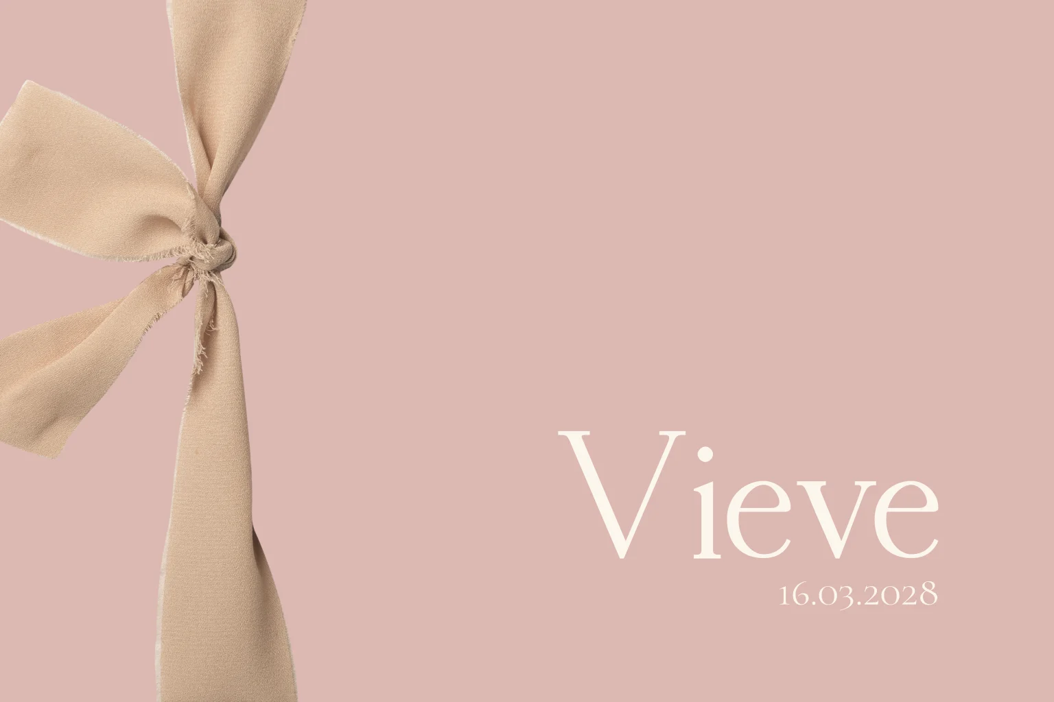 Kondig de geboorte van je dochter aan met dit mooie kaartje. Het kaartje heeft een lichtroze achtergrond met twee gaatjes om een echt lint doorheen te rijgen en te knopen als een strik. Hoe bijzonder! Het kaartje kan naar wens aangepast worden in onze online editor.