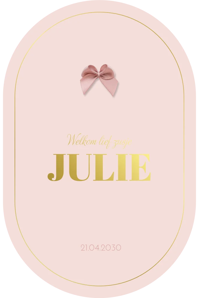 Kondig de geboorte van jullie kleine meisje aan met dit ovale kaartje. Het kaartje heeft prachtige goudfolie details en krijgt daarmee echt een luxe uitstraling.