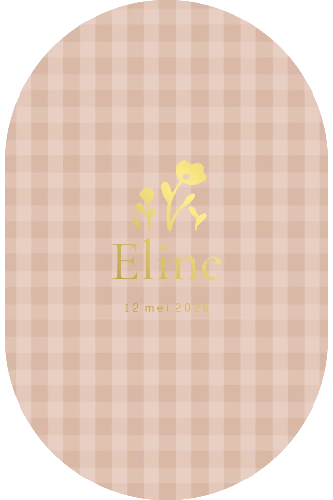 Kondig de geboorte van jullie kleine meisje aan met dit ovale kaartje. Het kaartje heeft een oudroze ruitjespatroon als achtergrond. Op de voorkant zie je ook nog prachtige goudfolie details en krijgt daarmee echt een luxe uitstraling. Bestel snel een proefdruk om dit kaartje in het echt te zien!