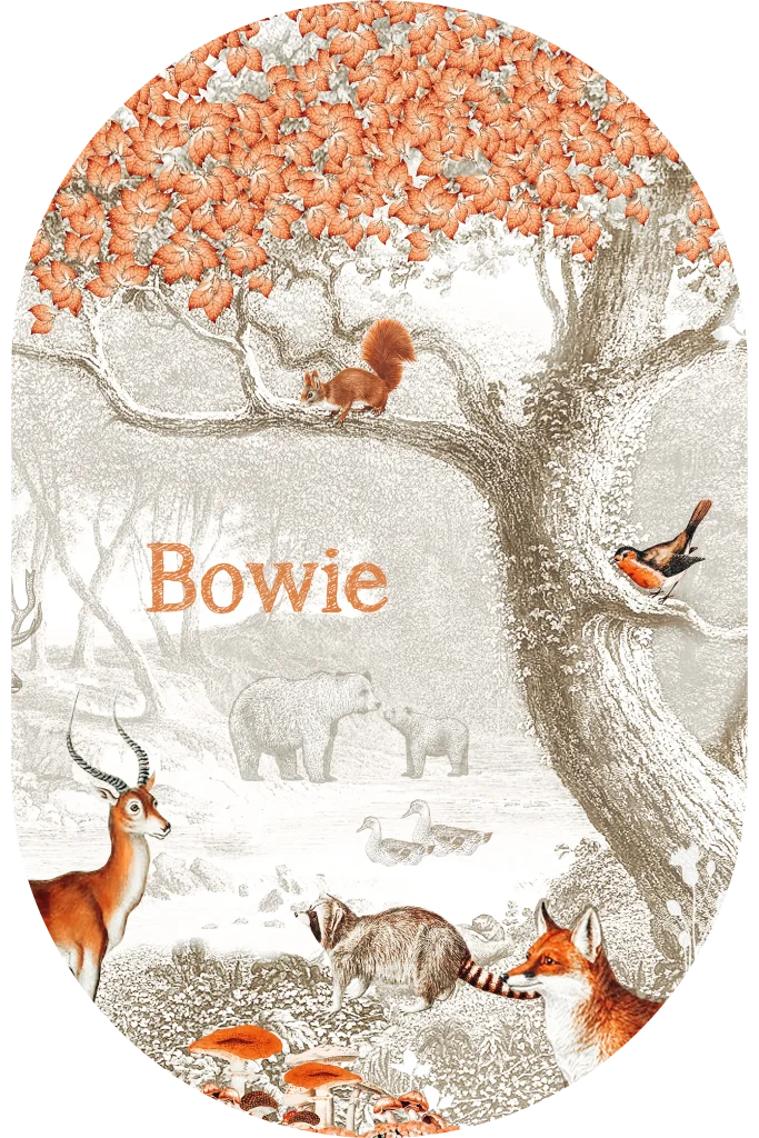 Een origineel geboortekaartje voor de geboorte van jullie kindje. Het kaartje heeft een ovale vorm en krijgt daarmee een unieke uitstraling. Op het kaartje zie je illustraties van verschillende bosdieren, zo zie je een hertje, wasbeer, eekhoorntje en vogeltje. Pas dit kaartje naar wens aan in onze online editor en bewonder het kaartje in het echt.