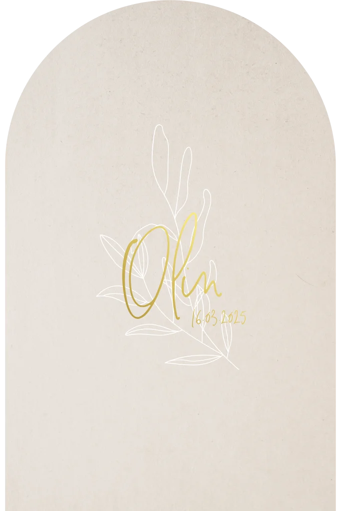 Dit is een luxe kaartje voor jullie pasgeboren dochter. Het kaartje heeft de vorm van een arch. Centraal op het kaartje staat de witte lijntekening van een takje. De goudfolie opdruk maakt dit kaartje helemaal compleet. Pas het kaartje naar wens aan in onze online editor en bestel snel een proefdruk om dit kaartje in het echt te zien!