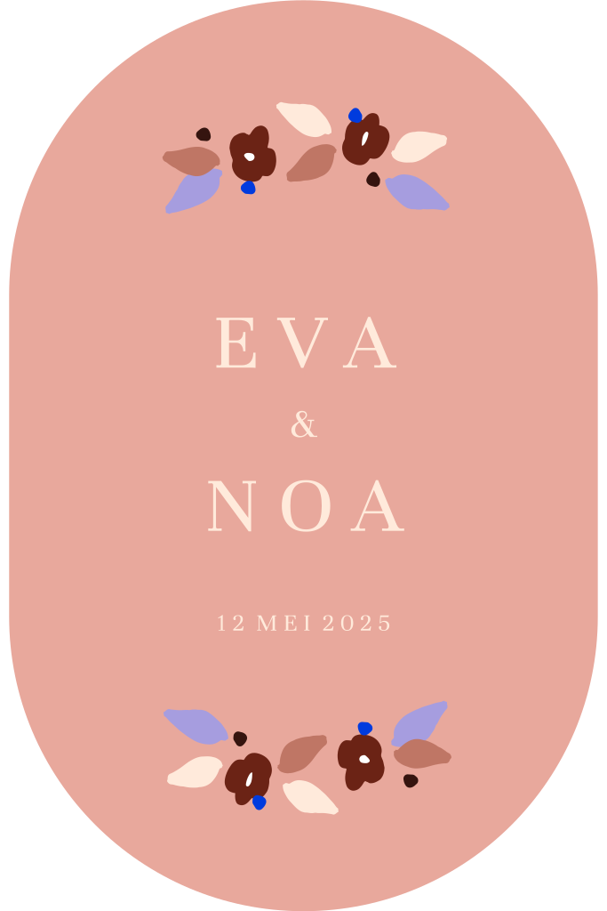 Origineel ovaal geboortekaartje met bloemen voor een tweeling
