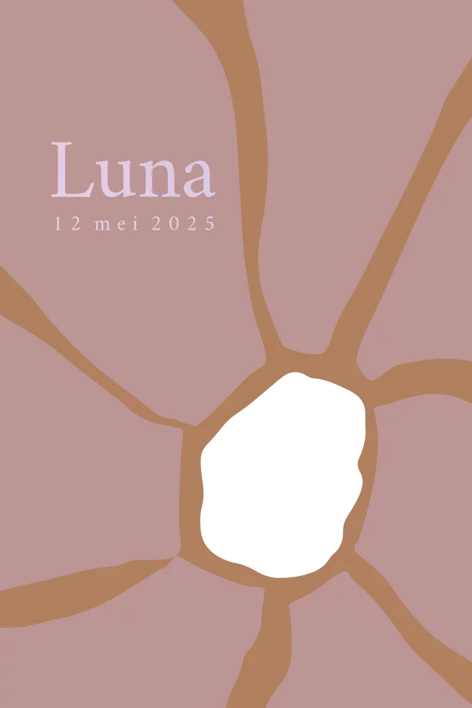 Een origineel geboortekaartje voor jullie meisje. Het kaartje heeft een bloemen thema met een uniek doorkijkje naar de binnenkant van het kaartje. Pas de kaart naar wens aan in onze online editor en bestel een proefdruk om het kaartje in het echt te bewonderen.