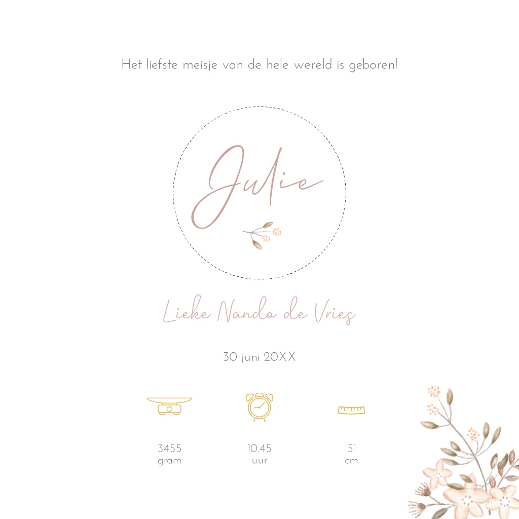 Watercolour geboortekaartje meisje uitgesneden rondje met veldbloemen