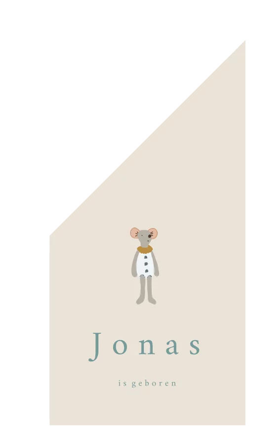 Hoera jullie kindje is geboren! Kondig de geboorte van jullie kindje aan met deze lieve geboortevlag! De vlag heeft een beige ondergrond met daarop een lieve illustratie van een muisje. Bewerk naar wens in onze online editor.