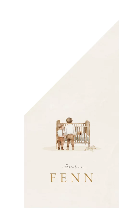 Een lieve geboortevlag voor jouw derde kindje! De vlag heeft beige tinten en prachtige illustraties van twee broers naast het ledikantje van hun broertje of zusje. Pas het ontwerp naar wens aan in onze online editor.