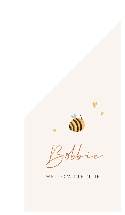 Laat iedereen weten dat jullie kindje geboren is met deze vrolijke geboortevlag met een bijtje en hartjes. De naam van je kindje staat in sierlijke letters. De vlag heeft een creme ondergrond. Pas de vlag naar wens aan in onze online opmaaktool.