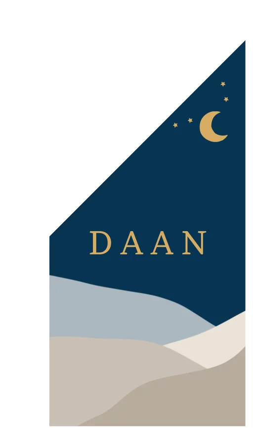 Een stoere geboortevlag voor jouw kindje. De vlag heeft een donkerblauwe achtergrond. Daarop zie je een berglandschap. Boven in de vlag zie je een lief maantje en sterretjes. Pas de vlag naar wens aan in onze online editor.