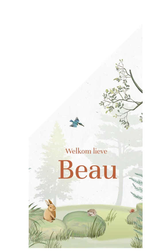 Een lieve en vrolijke geboortevlag om de geboorte aan te kondigen. Het ontwerp heeft leuke illustraties van verschillende bosdieren.