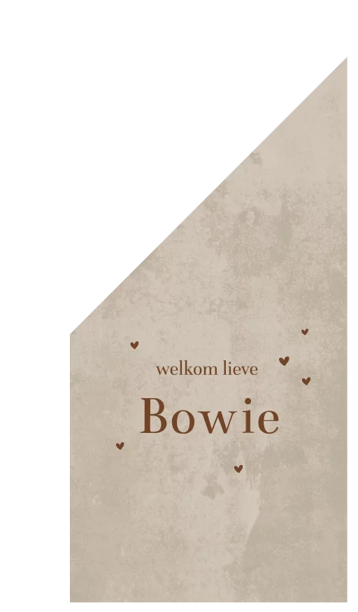 De vlag kan uit, iedereen mag het weten dat jullie kindje is geboren met deze geboortevlag! Op dit hippe design met een bruine velvet-look achtergrond staan hartjes en maken het compleet, lief!