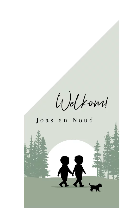 Groene geboortevlag met silhouetjes van tweeling in landschap