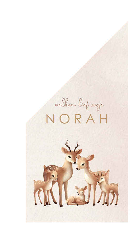 Heet jouw nieuwe kleintje welkom met deze mooie geboortevlag, passend bij het geboortekaartje. Het lieve hertengezinnetje zorgt ervoor dat de broertjes en zusjes van jouw nieuwe kleintje ook op het kaartje staan, hoe lief!