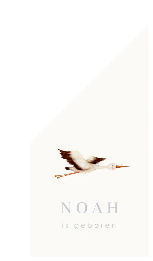 Een mooie geboortevlag met een illustratie van een vliegende ooievaar in watercolour. De achtergrond van de vlag is gebroken wit. Pas de vlag naar wens aan in onze online editor.