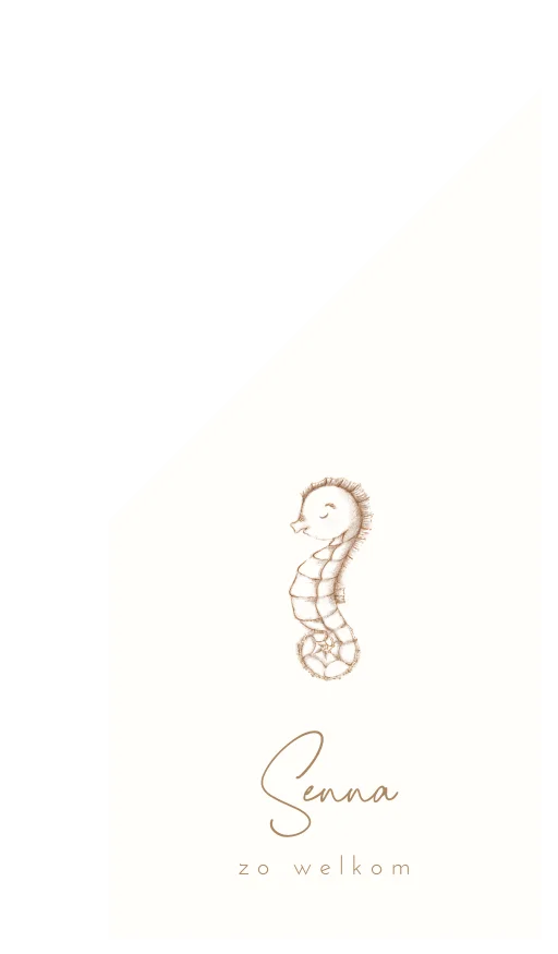 Een stijlvolle geboortevlag voor jouw kindje. De vlag heeft een prachtige beige illustratie van een zeepaardje. Daaronder is ruimte voor tekst. Pas het ontwerp naar wens aan in onze online editor.