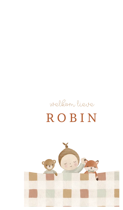 Wat een lieve geboortevlag! Deze vlag heeft een illustratie van een kindje onder een dekentje met knuffels. Pas het ontwerp naar wens aan in onze online editor.