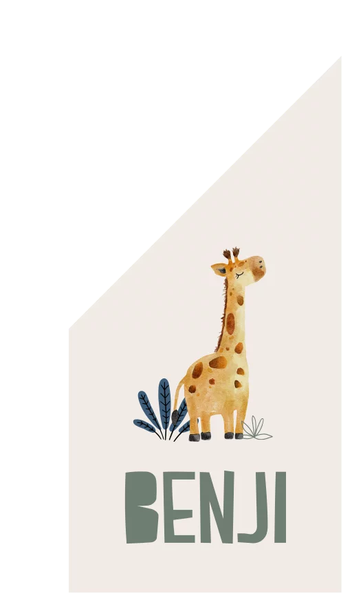 De vlag kan uit, want jullie kindje is geboren. Deze toffe vlag heeft een jungle thema met een vrolijke illustratie van een giraffe. Onder de giraffe is ruimte voor de naam van jullie kindje. Pas de vlag naar wens aan in onze online editor.
