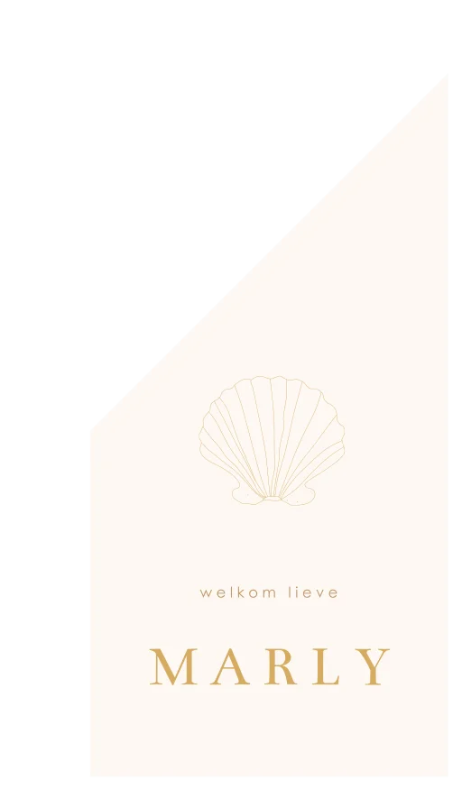 Een hippe geboortevlag om de geboorte van jouw kindje aan te kondigen. De vlag heeft een gebroken witte achtergrond met daarop een lijntekening van een schelp. Pas het ontwerp naar wens aan in onze online editor.