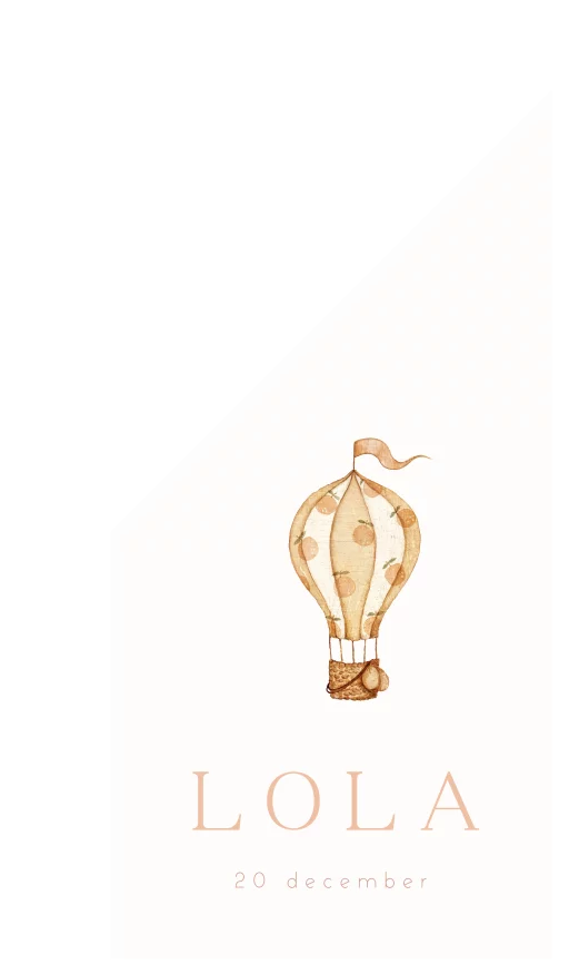 Vier de geboorte van jullie kleine en hang de vlag uit! Op deze vlag staat een luchtballon met een detail van sinaasappeltjes. Pas het ontwerp naar wens aan in de online editor.